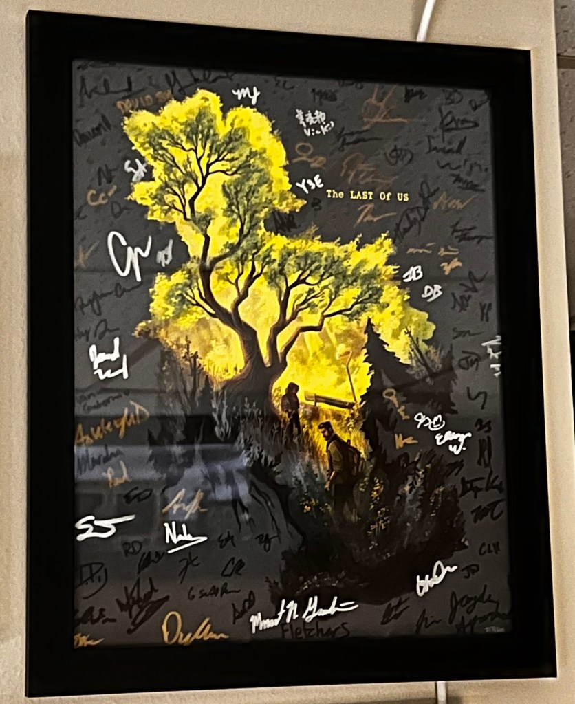 A very special green variant of “TOGETHER ALONE” by artist Beverly Arce, signed by Naughty Dog employees- print, was given as a gift to ND employees only, to commemorate the 10 years of #thelastofus