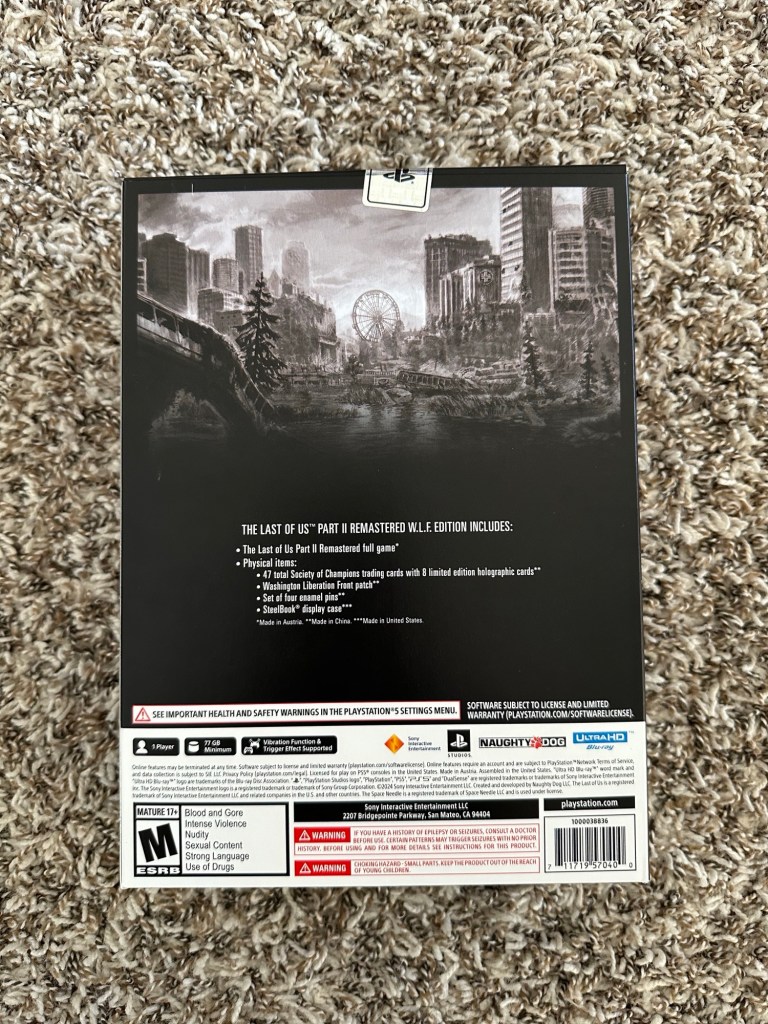 USA version had the biggest difference in terms of seals! They had a playstation hologram seal instead of the generic plastic seal the other regions have! Apparently, the steelbook inside the box, does not come sealed, like the other ones!