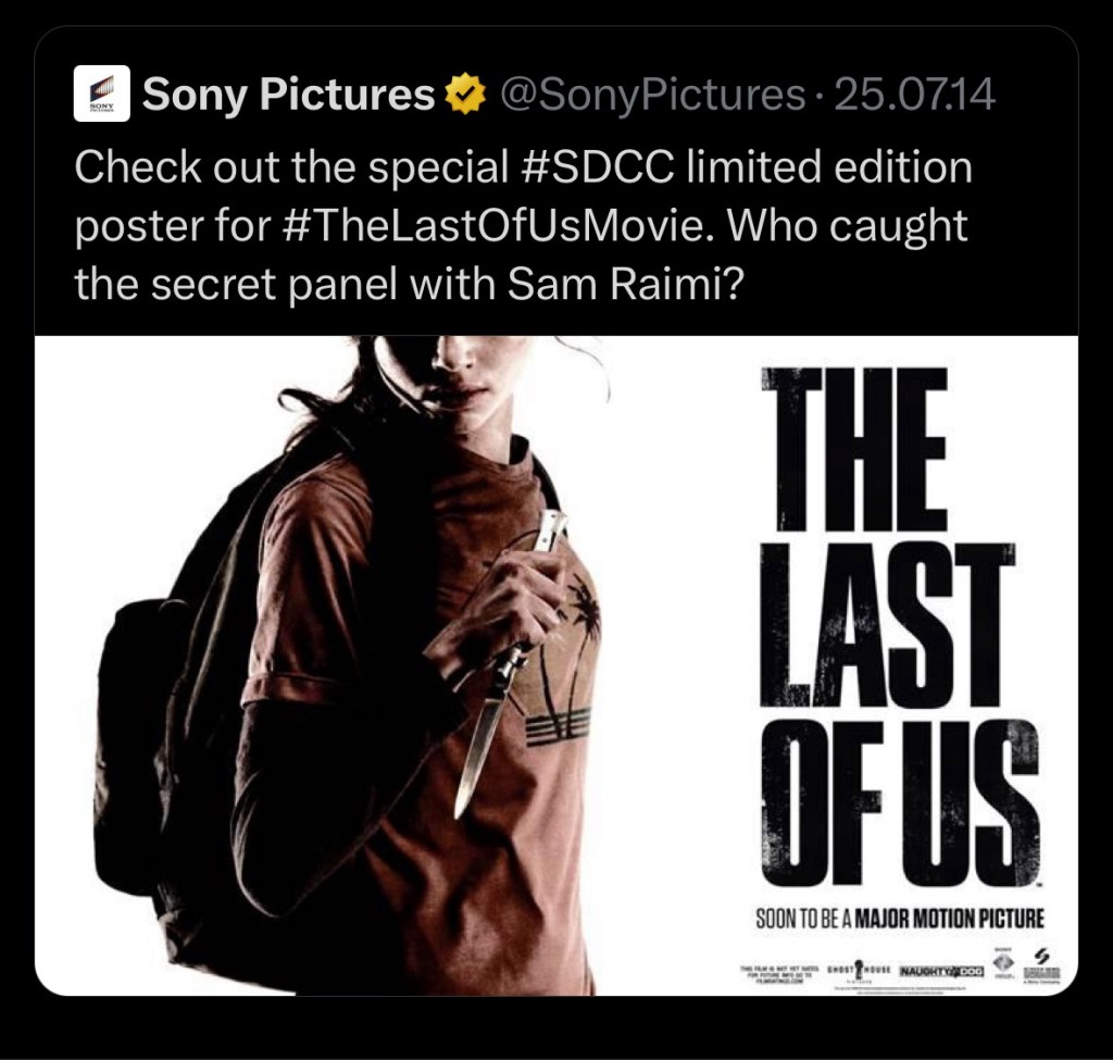 In 2014 SDCC, Sony announced that there would be a The Last of Us movie, directed by Sam Raimi!