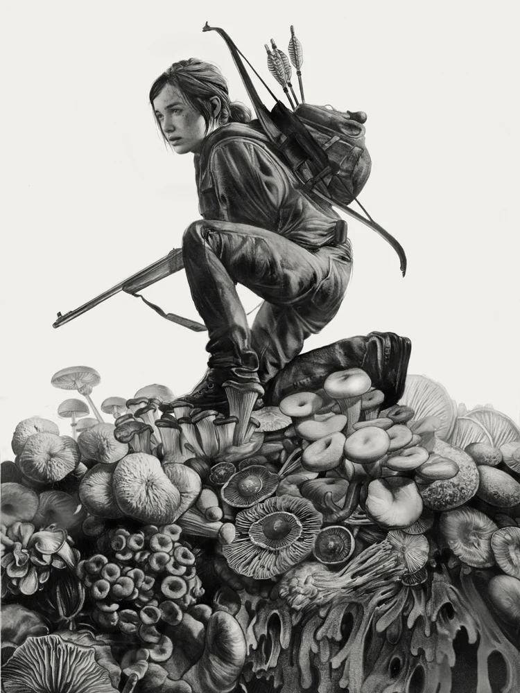 One is featuring an iconic scene with Bella Ramsey as Ellie, from the HBO show, episode 2, titled “Nest”. It was initially drawn for the series, “One Worth Saving”, where Greg NEST a drawing for each episode of the HBO show season 1. This was for episode 2.