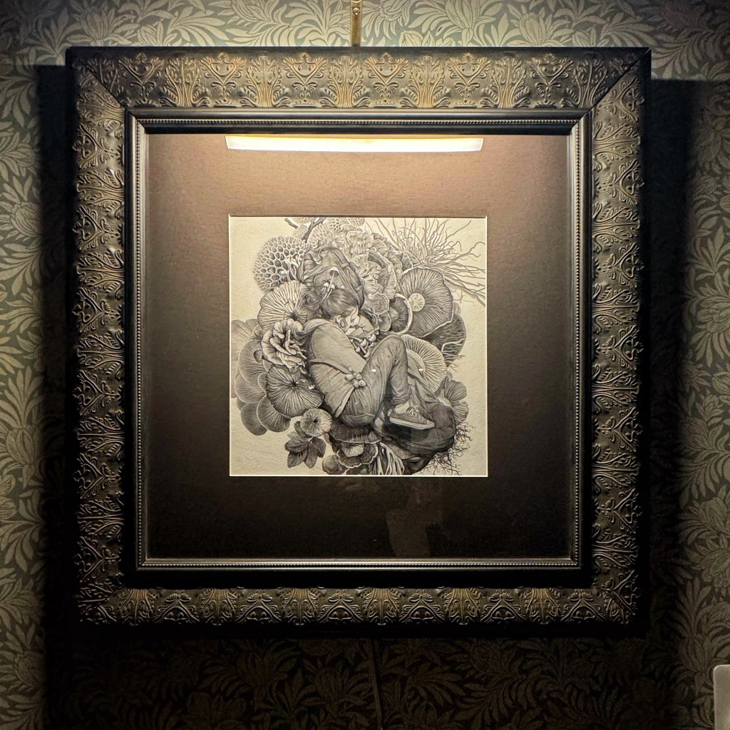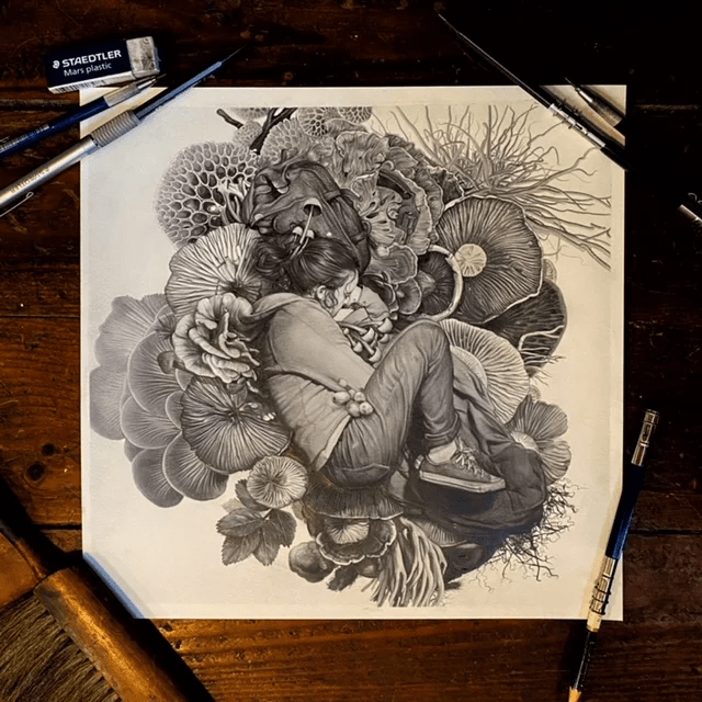 Greg’s immense skill is showcased brilliantly in his traditional way of graphite drawings. Very powerful and beautiful at the same time! We do not know who holds the original graphite drawing at the moment.