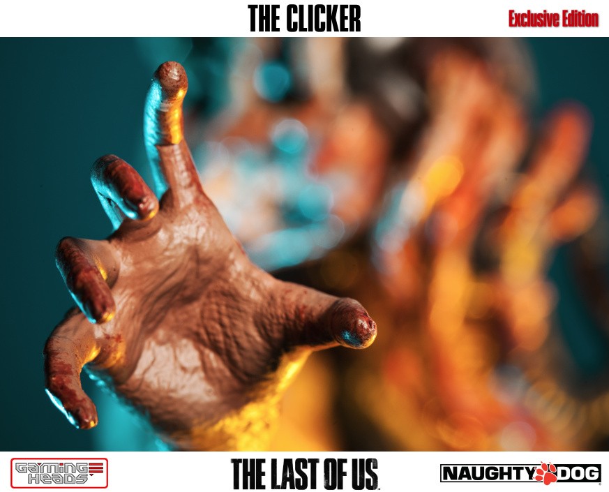 Each statue arrives in deluxe full-color packaging, an authenticity card that allows you to register your statue with us and a base that has been individually numbered by hand. Cast in high quality poly-stone, The Clicker is hand finished and hand painted to our exact standards.
