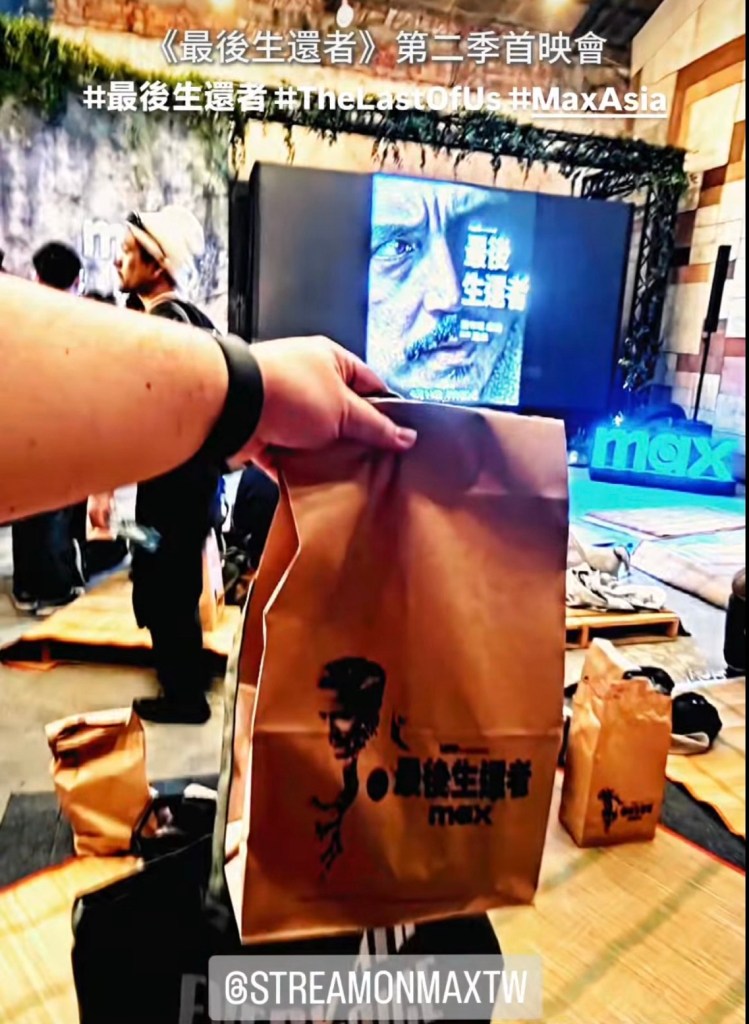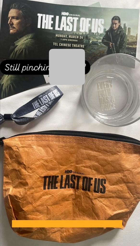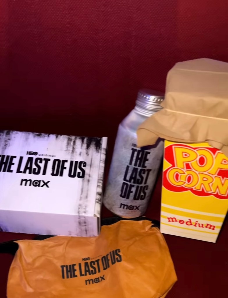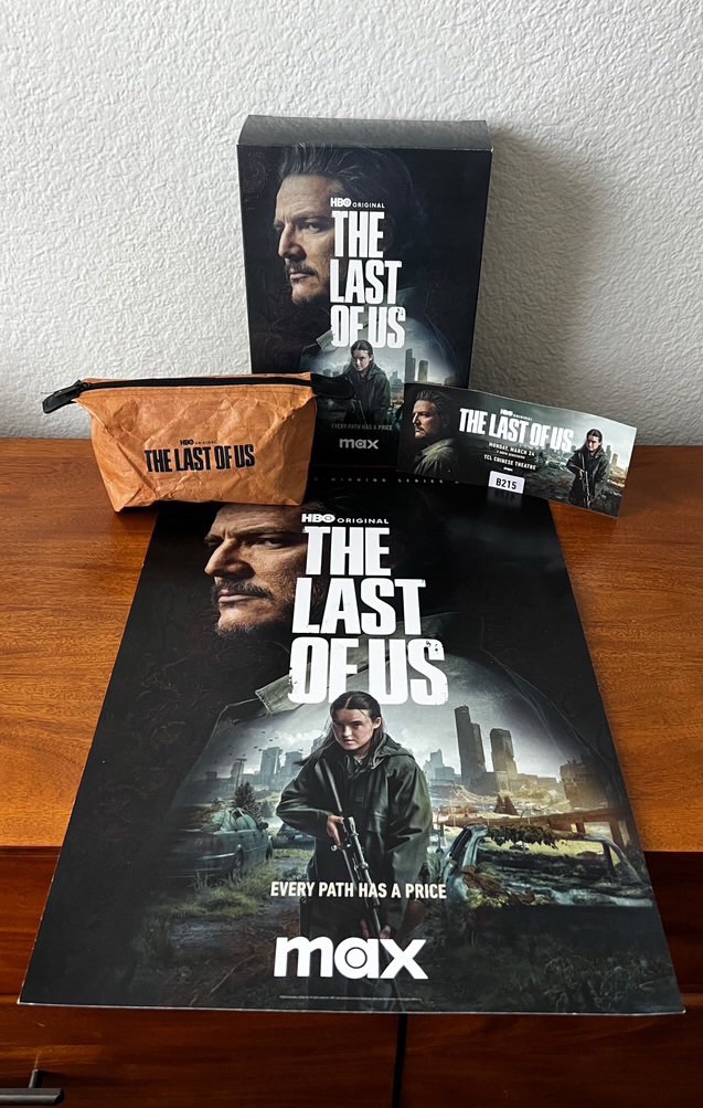 They gave away nice TLoU themed popcorn boxes and envelopes to store mobile phones!